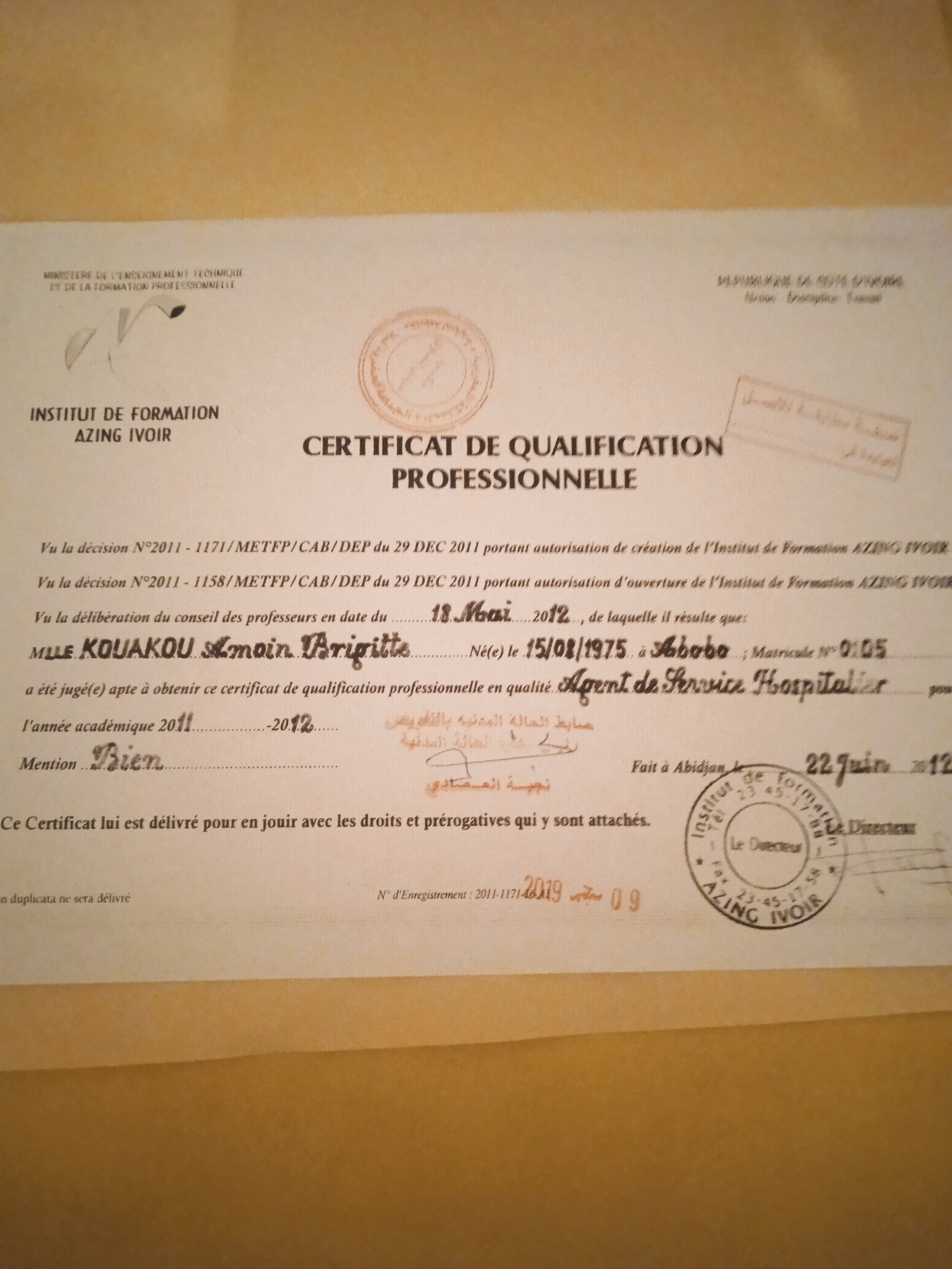 Amoin brigitte peut vous fournir sur demande les coordonnées d'anciens employeurs qui la recommandent.