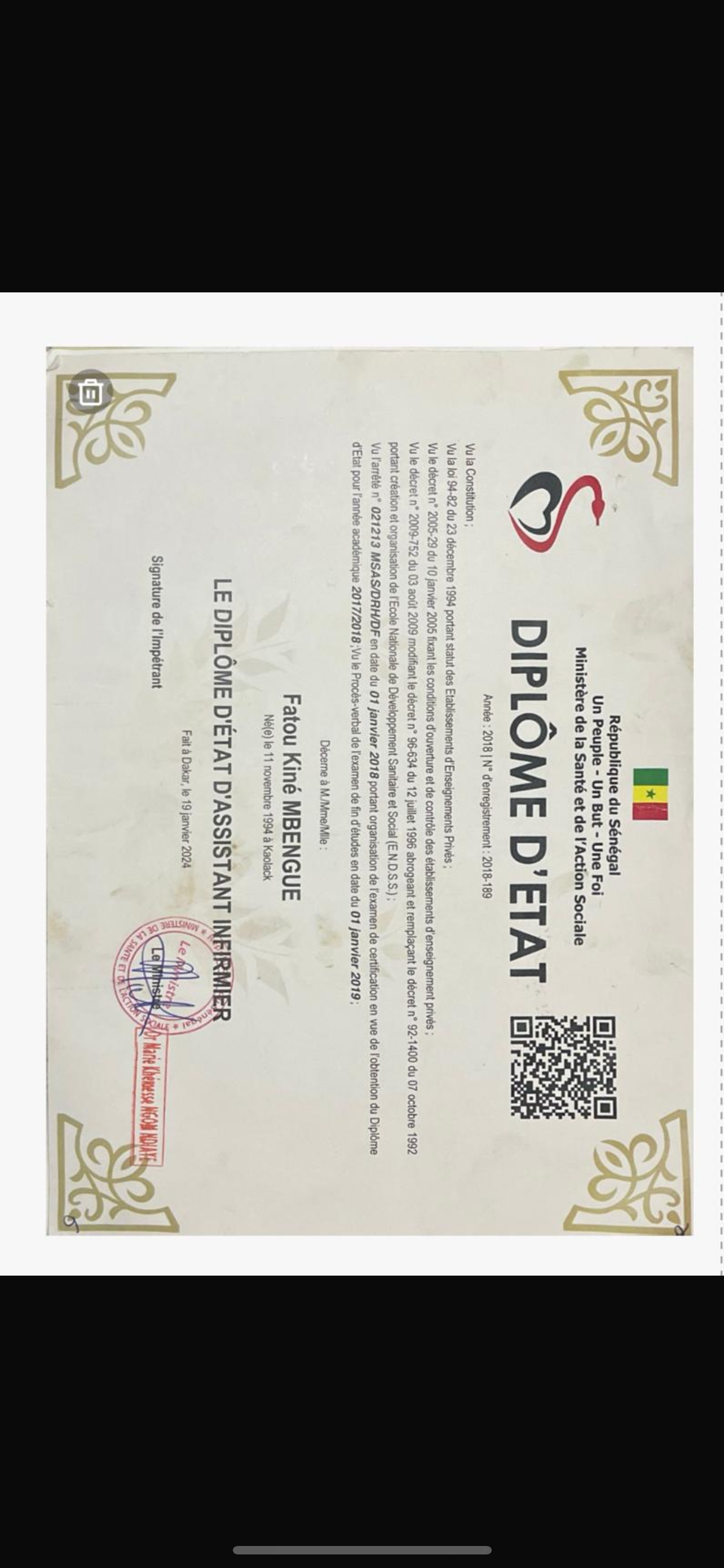 Fatou kine peut vous fournir sur demande les coordonnées d'anciens employeurs qui la recommandent.