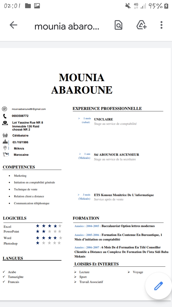 Mounia peut vous fournir sur demande les coordonnées d'anciens employeurs qui la recommandent.